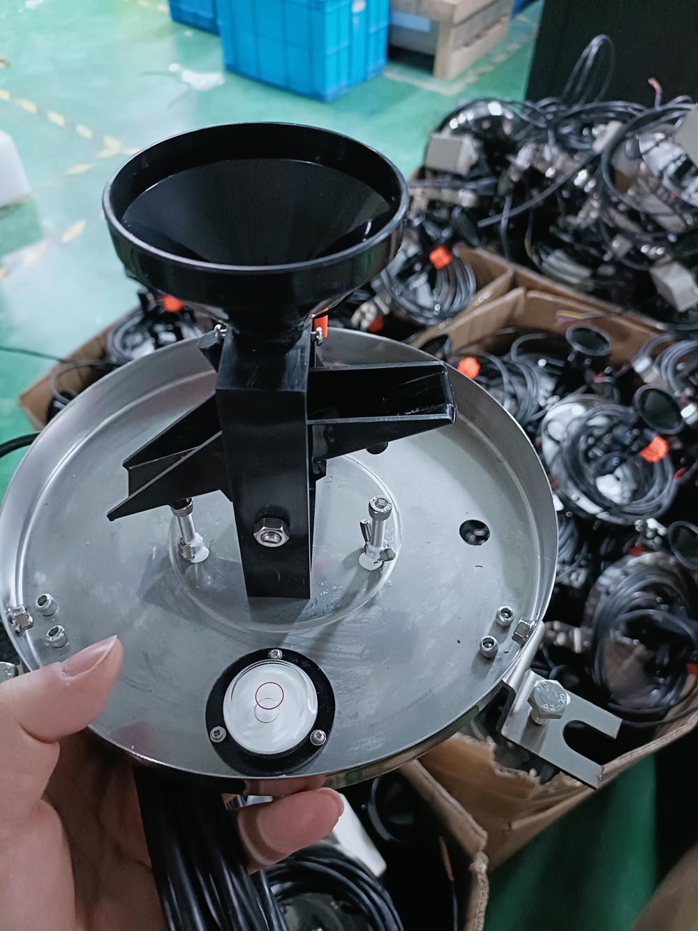 翻斗式雨量计由雨量计壳体、雨量收集器、漏斗、翻斗支架、翻斗、轴承螺钉、出水仓、密封接头、干簧管、水平气泡、调节支撑板、控制箱、调平装置、接线端子、支腿、雨量计底座等部件组成。其中,雨量计底座安装有翻斗轴、圆形水平气泡、干簧管支架及信号输出端子。